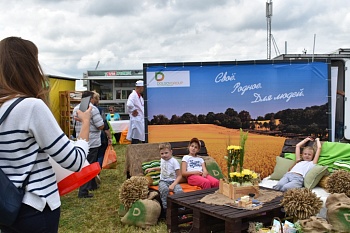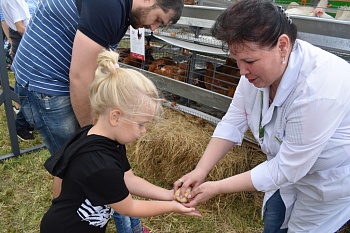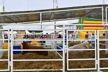 На площадке агрохолдинга были представлены загоны с животными: племенными быками и птицей, которые вызвали настоящий ажиотаж у зрителей. Люди фотографировались возле них и восхищались, читая данные о быках на информационных табличках, в частности, их весом. Например, вес быка шаролезской породы может доходить до 1200 кг. А площадка с птицами превратилась в самый настоящий контактный зоопарк. Дети с огромным интересом гладили кур, брали в руки цыплят, изучая процесс развития птицы от яйца до взрослой курицы.
