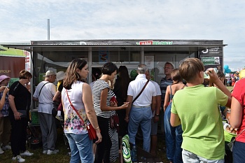 Особенной популярностью пользовались на «Дне балтийского поля» торговые точки «Наш продукт», где любой желающий мог не только приобрести молочную и мясную продукцию агрохолдинга, но и попробовать ароматные колбаски для гриля, которые здесь же готовил сам «Роминта»!