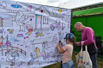 Нашлось немало дел и для маленьких посетителей. Они не только с удовольствием рассматривали животных и птиц, но фотографировались в фотозоне, все вместе раскрашивали большую картину, изучали семена зерновых на представленной выставке.