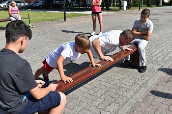 Семейные команды состояли из трех человек – папы, мамы и ребенка. Самому маленькому участнику было 5 лет. Они состязались в эстафетах на скорость, силу, меткость. Активно болели друг за друга, помогали и поддерживали.
